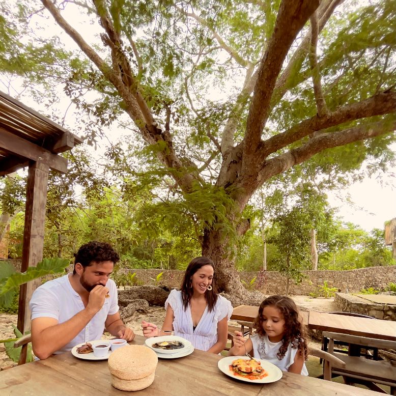 La gastronomía yucateca es reconocida a nivel mundial por su exquisito sabor. Cochinita pibil, sopa de lima, relleno negro, salbutes y panuchos son algunos de los platillos que puedes disfrutar en nuestro restaurante, en medio de los jardines de nuestro santuario. Te recomendamos ampliamente acompañarlo de un coctel de nuestra selecta mixología.